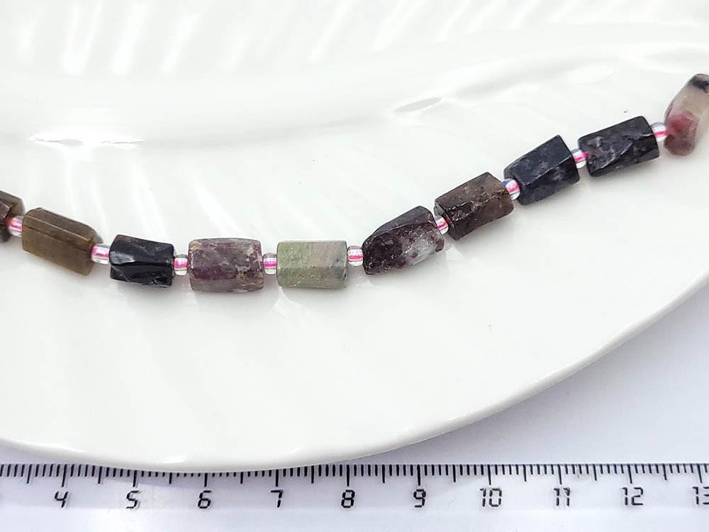 Турмалин цветной цилиндр граненый 10*7 мм 16 шт/нить