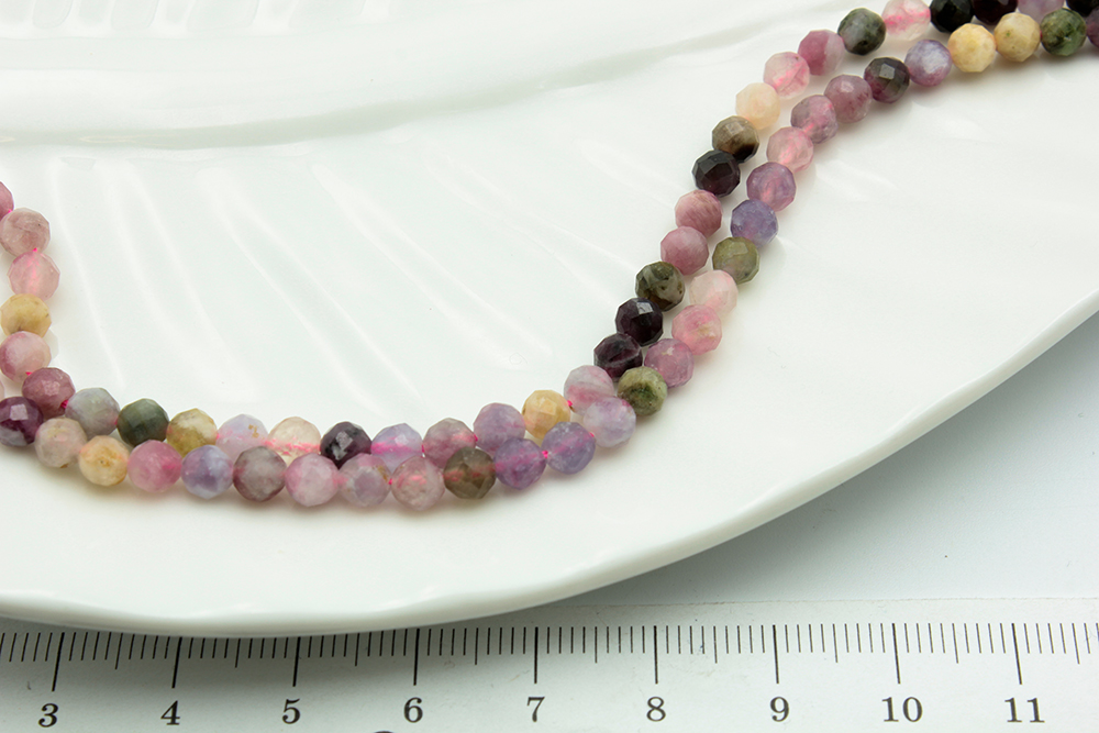 Турмалин разноцвет, круглый гран, 4мм, 39-40см/нить