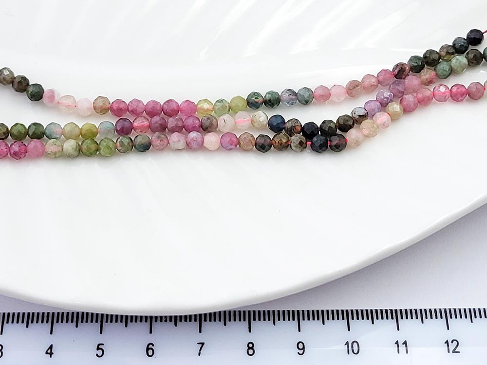 Турмалин разноцветный, круглый граненый, 4мм, 39-40см/нить2