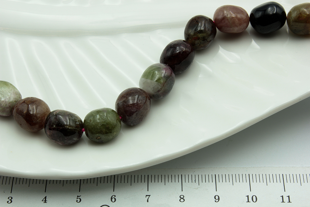Турмалин разноцветный галтовка гладкая 10мм 9шт/нить