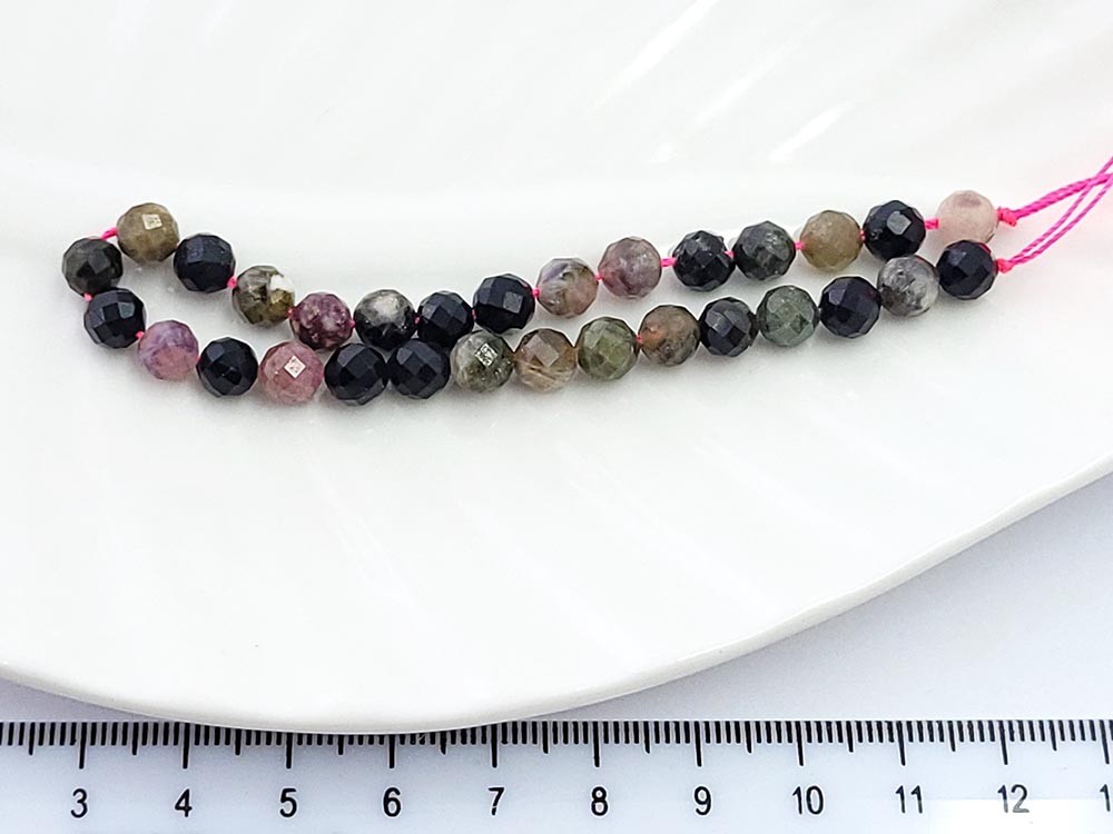 Турмалин разноцветный круглый граненый 6мм 30шт/нить