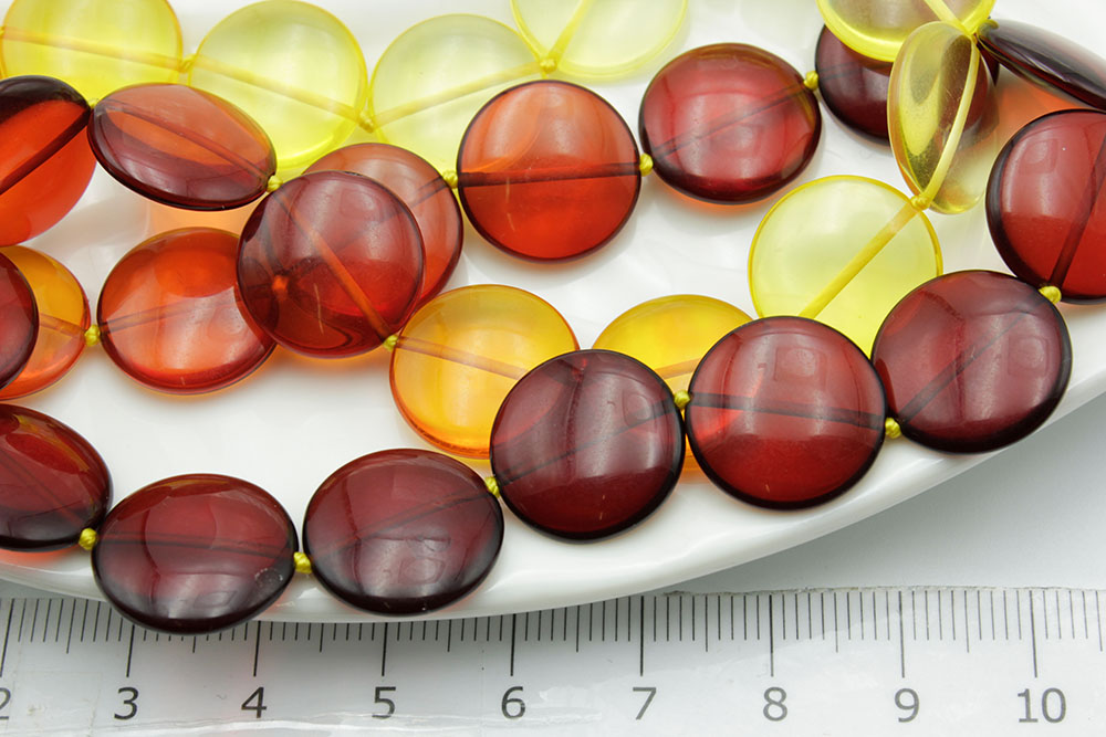 Янтарь цветной таблетка 15мм 47см/нить с замочком
