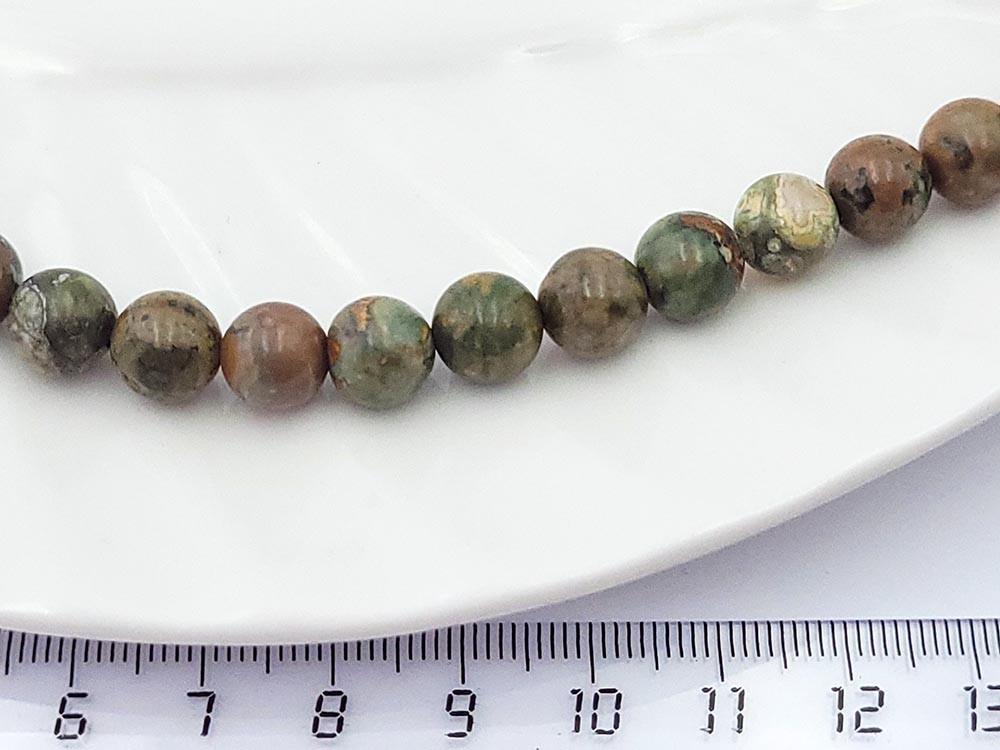 Яшма зеленая пятнистая, круглая 8 мм, 22 шт/нить