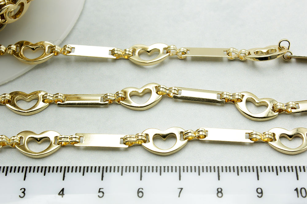 Крупная цепь Корея золото, прямоугольник 14*4мм, сердце 12*8*2мм №342, 1м.