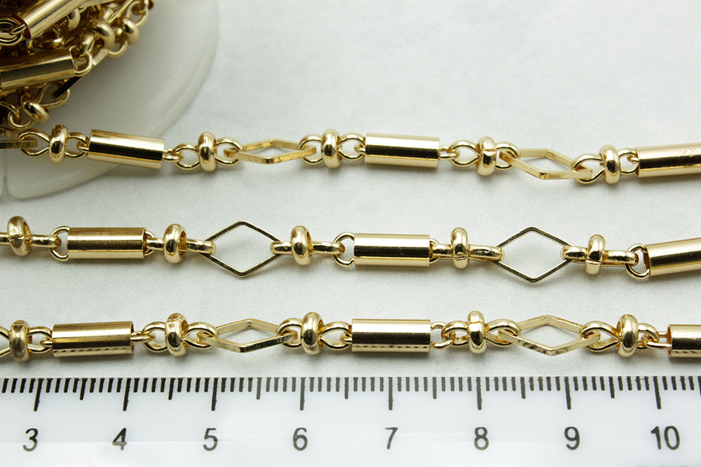 Крупная цепь Корея золото, ромб 11*7мм, цилиндр 9*4мм №483, 1м.