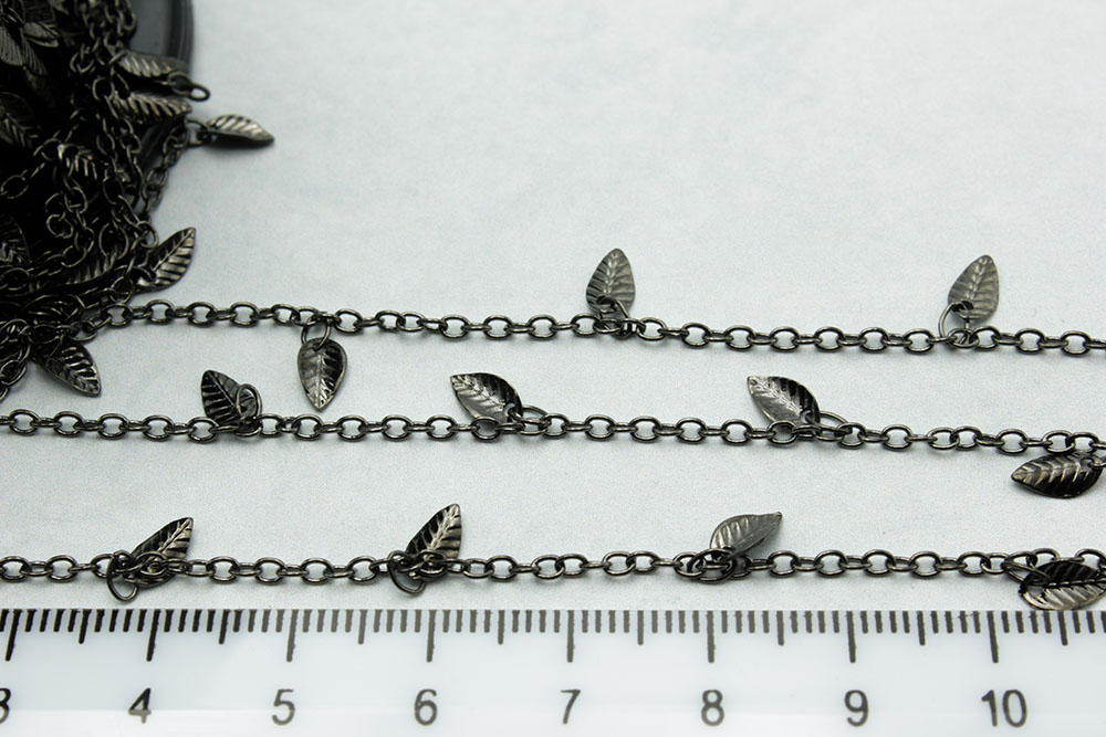Цепь Корея никель, звено 2*1мм с листьями 6*3мм №379, 1м.