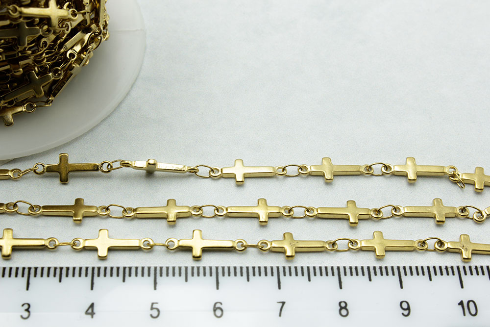 Цепь Корея, нержавейка, золото, крест 13*5*1мм №374, 1м.