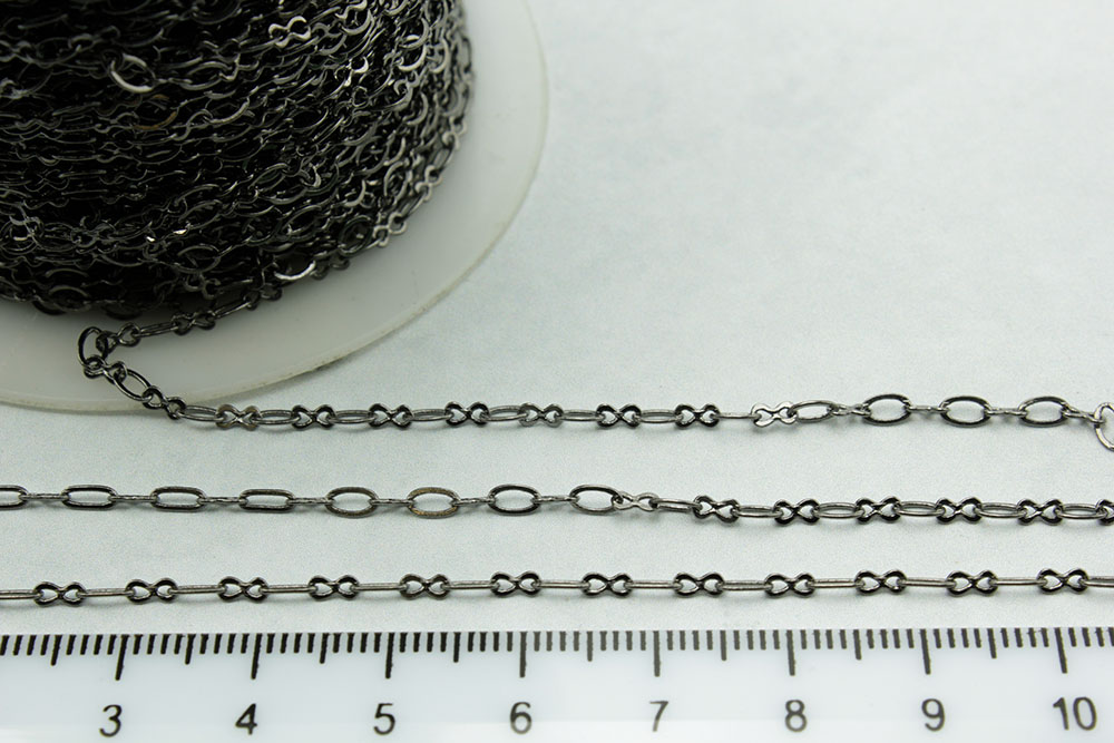Цепь №166, черная, звено с восьмеркой 3*4мм, 1м