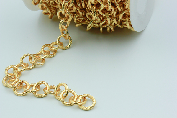 Цепь №225 крупная, золото, витое кольцо 12мм, 1м