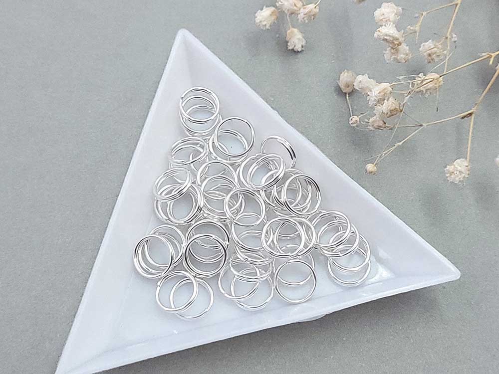 Колечки двойные, белое серебро, 8 мм (уп.50 шт)