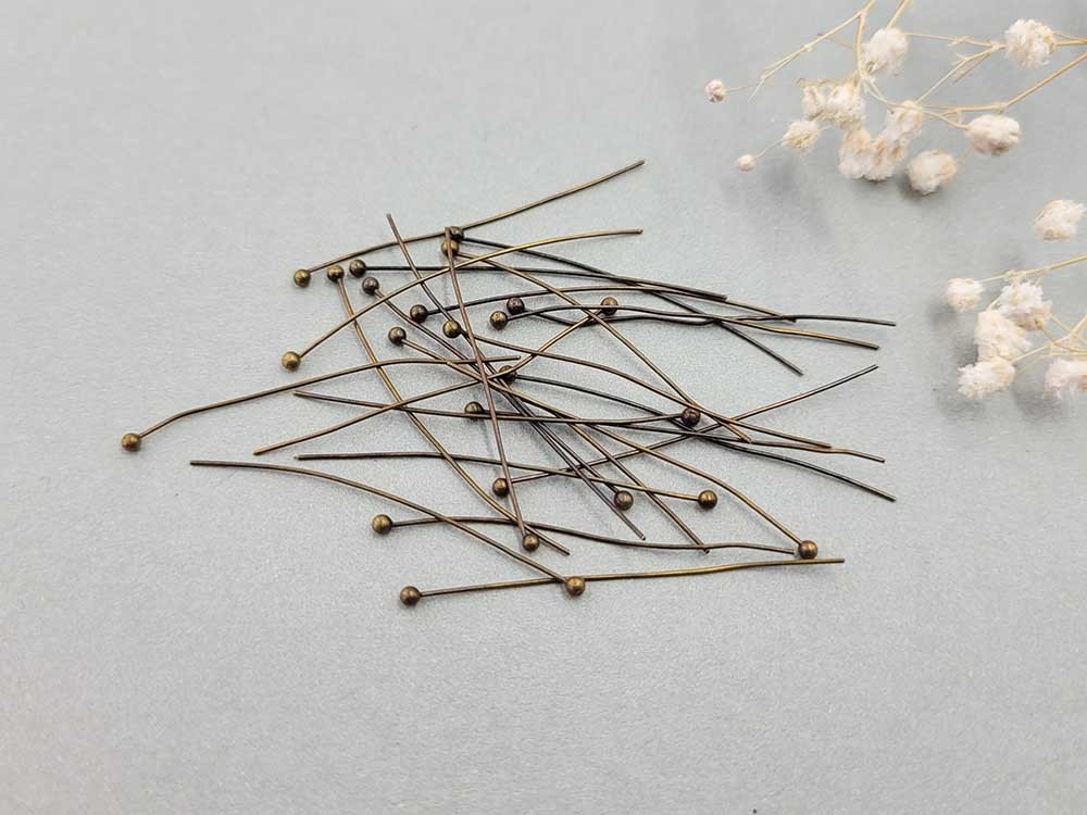 Пин с шариком, бронза, 4 см (уп. 25 шт.)