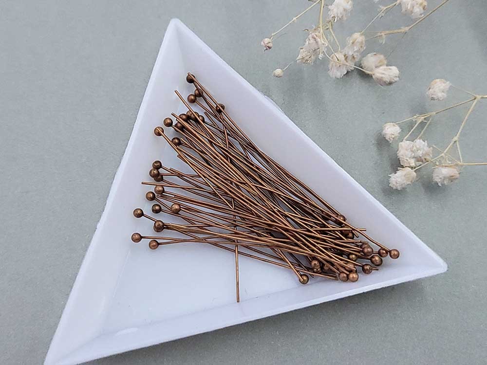 Пин с шариком, медь, 4 см (уп. 50 шт.)