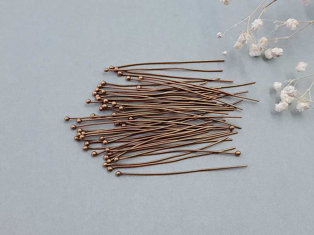 Пин с шариком, медь, 5 см (уп. 50 шт.)