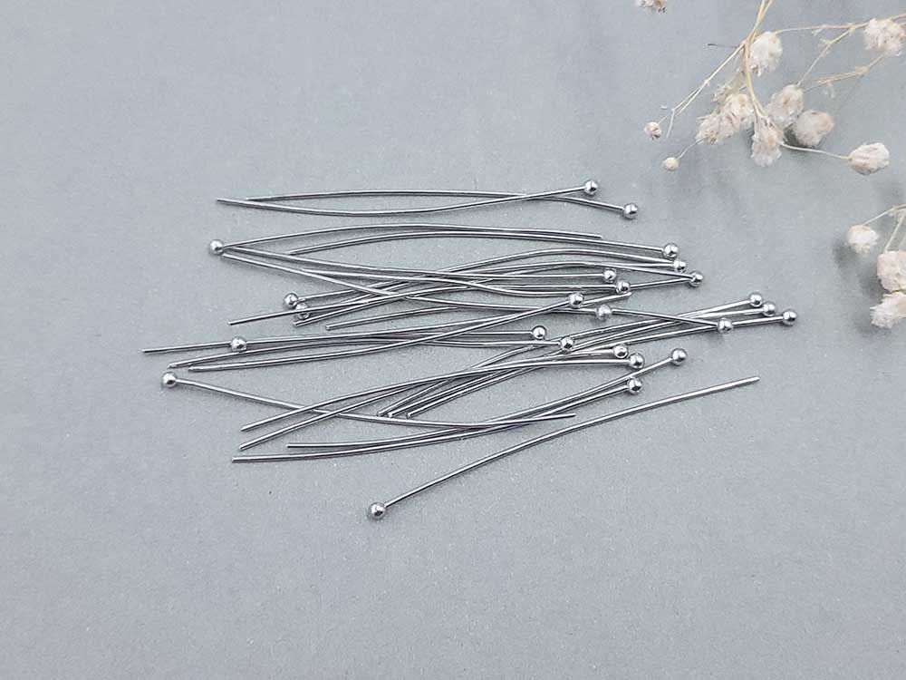 Пин с шариком, серебро, 5 см (уп. 25 шт.)