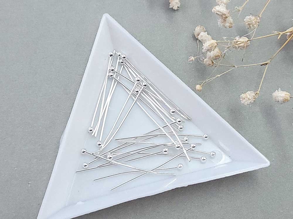 Пин с шариком, светлое серебро, 3 см (уп. 25 шт.)