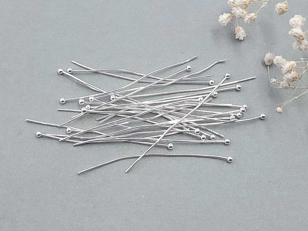 Пин с шариком, светлое серебро, 5 см (уп. 25 шт.)