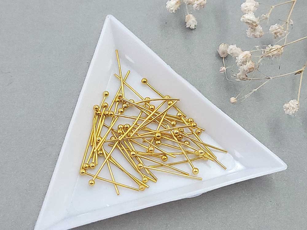 Пин с шариком, золото, 2 см (уп. 50 шт.)