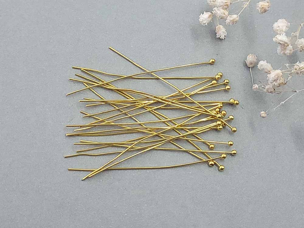 Пин с шариком, золото, 5 см (уп. 25 шт.)