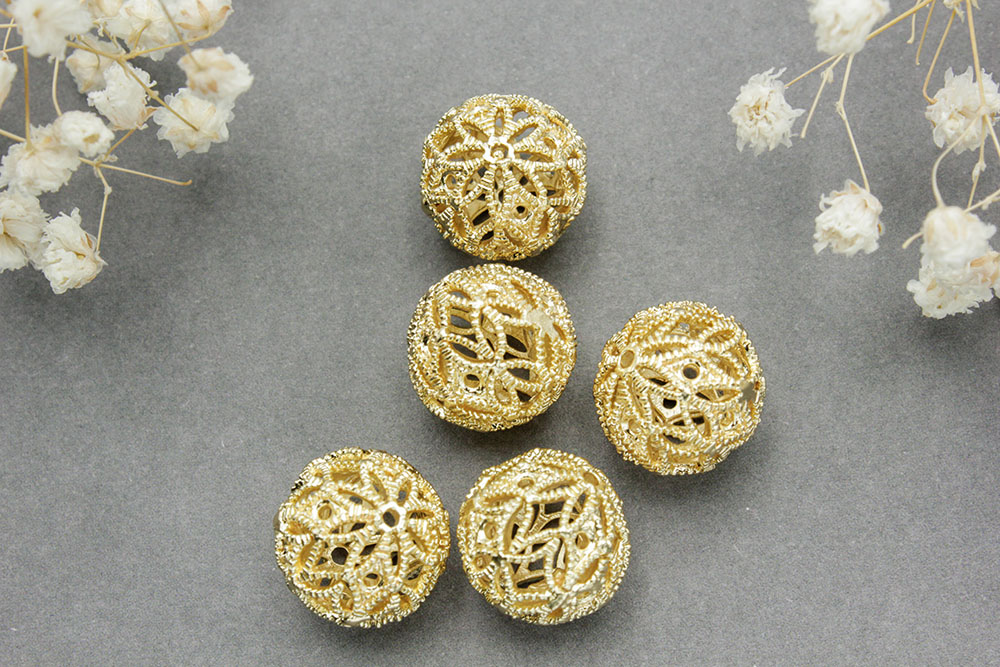 Бусина №22 шар-цветок 14мм цвет золото 1шт