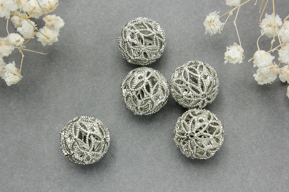 Бусина №23 шар-цветок 14мм цвет серебро 1шт