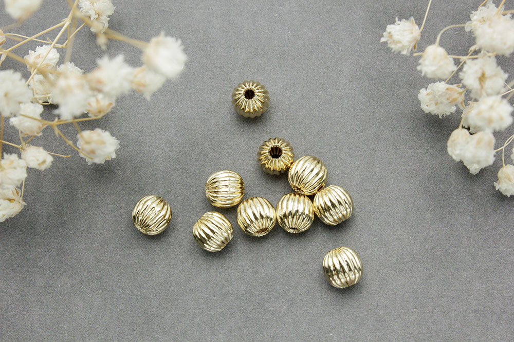 Бусина №66 шар рифленый 6мм цвет золото 1шт