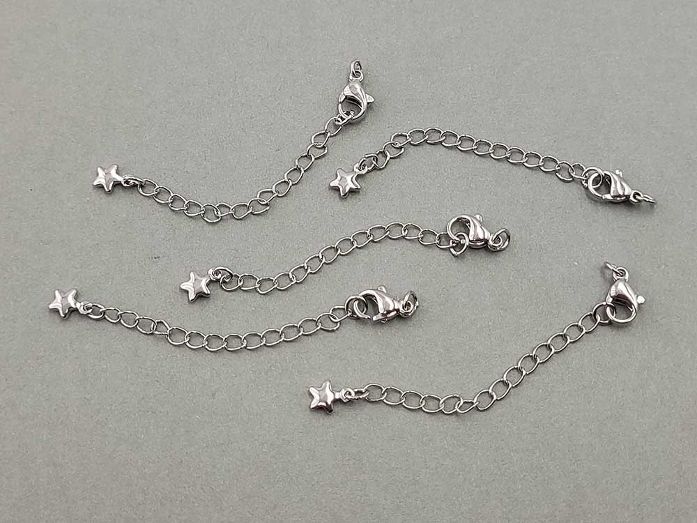 Карабин 10*6 мм с цепочкой+ звезда, цвет серебро, 5шт