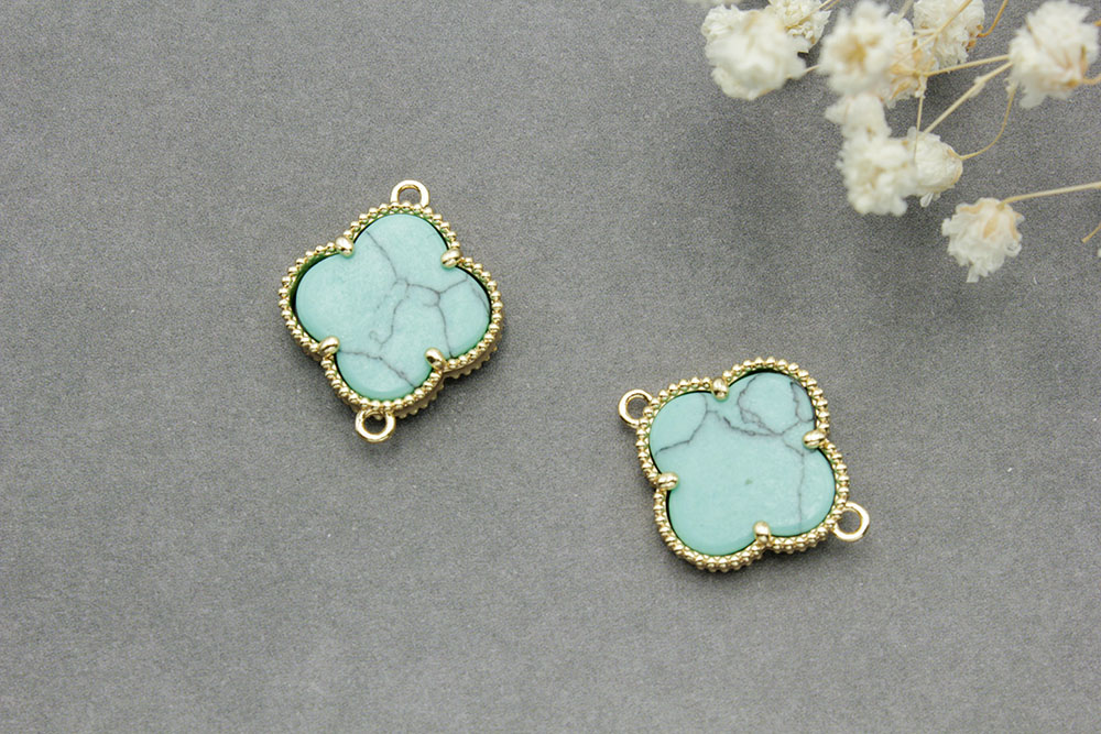 Коннектор №1 со стеклом(бирюза) 20*16мм цвет золото 1шт