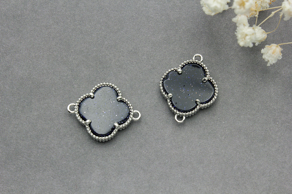 Коннектор №12 со стеклом(авантюрин) 20*16мм цвет серебро 1шт