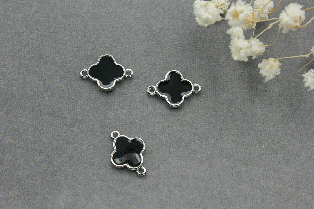 Коннектор №19 со стеклом(черный) 14*10мм цвет серебро 1шт