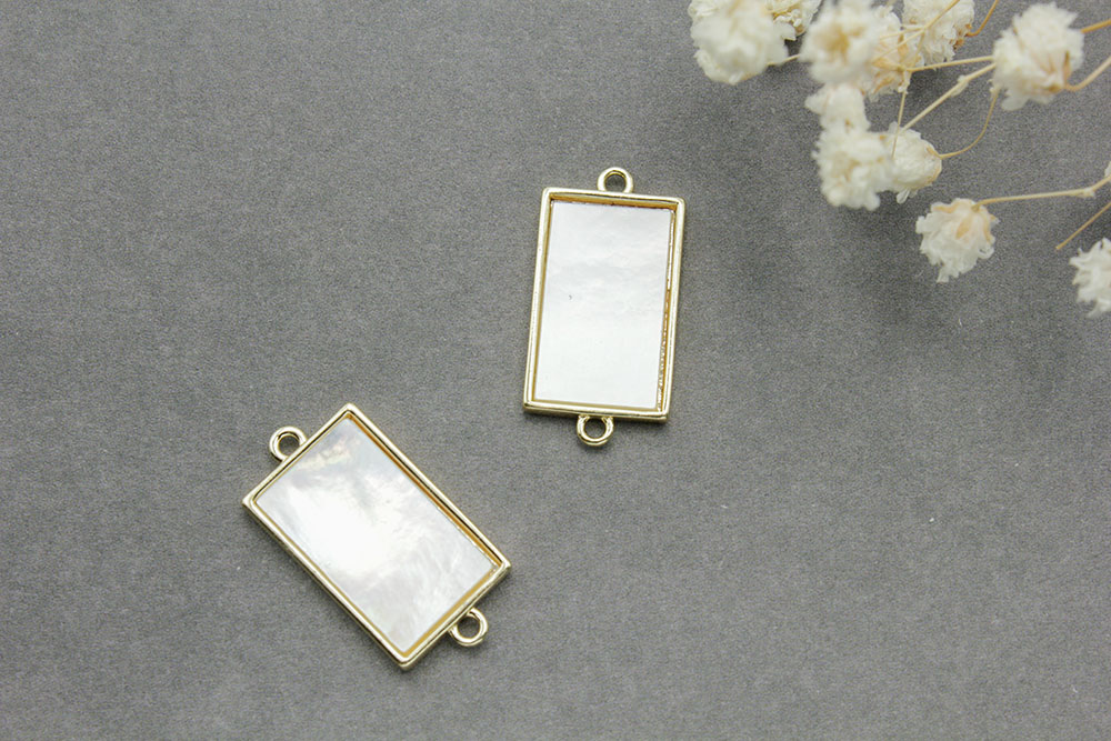 Коннектор №22 прямоугольник с перламутром 21*10мм цвет золото 1шт