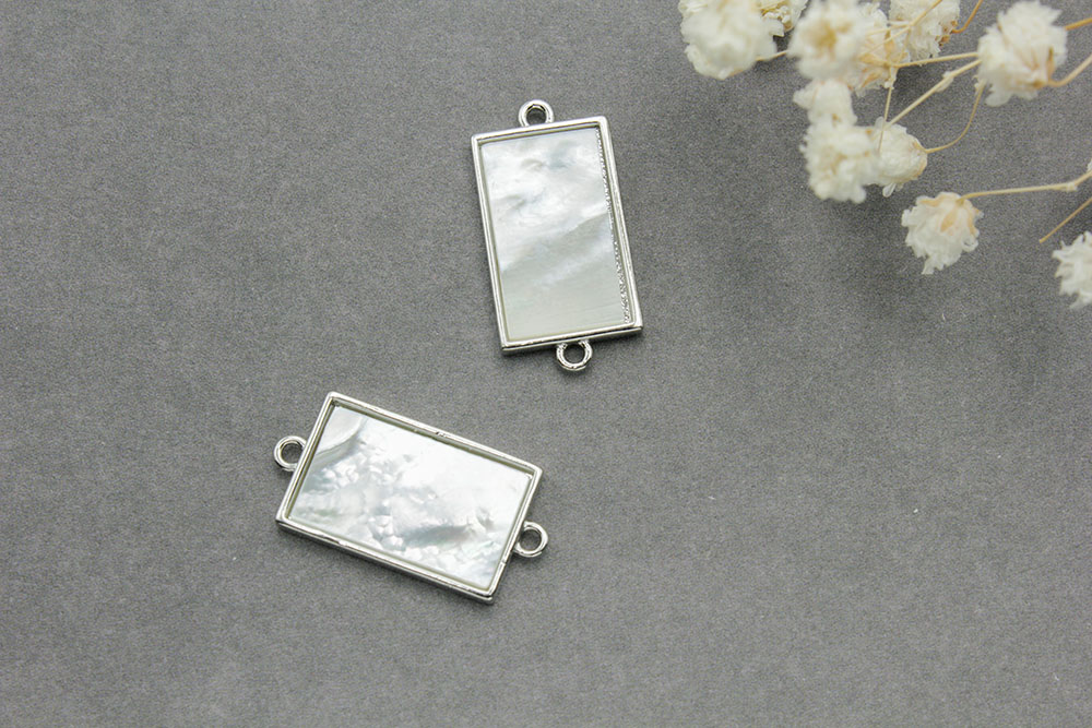Коннектор №23 прямоугольник с перламутром 21*10мм цвет серебро 1шт