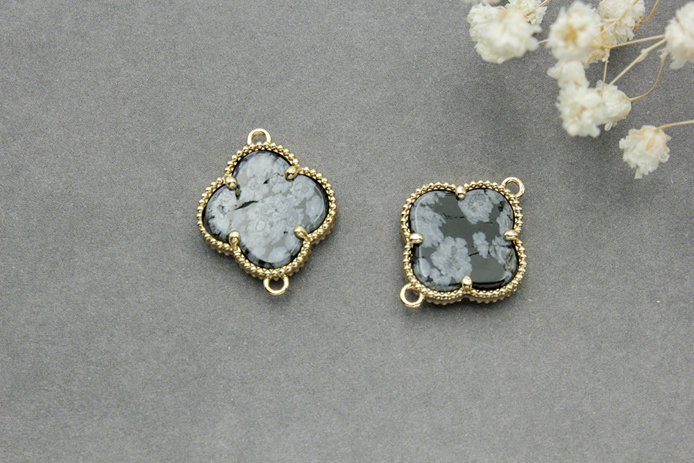 Коннектор №3 со стеклом(обсидиан) 20*16мм цвет золото 1шт
