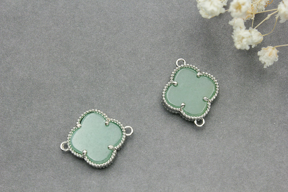 Коннектор №8 со стеклом(авантюрин) 20*16мм цвет серебро 1шт