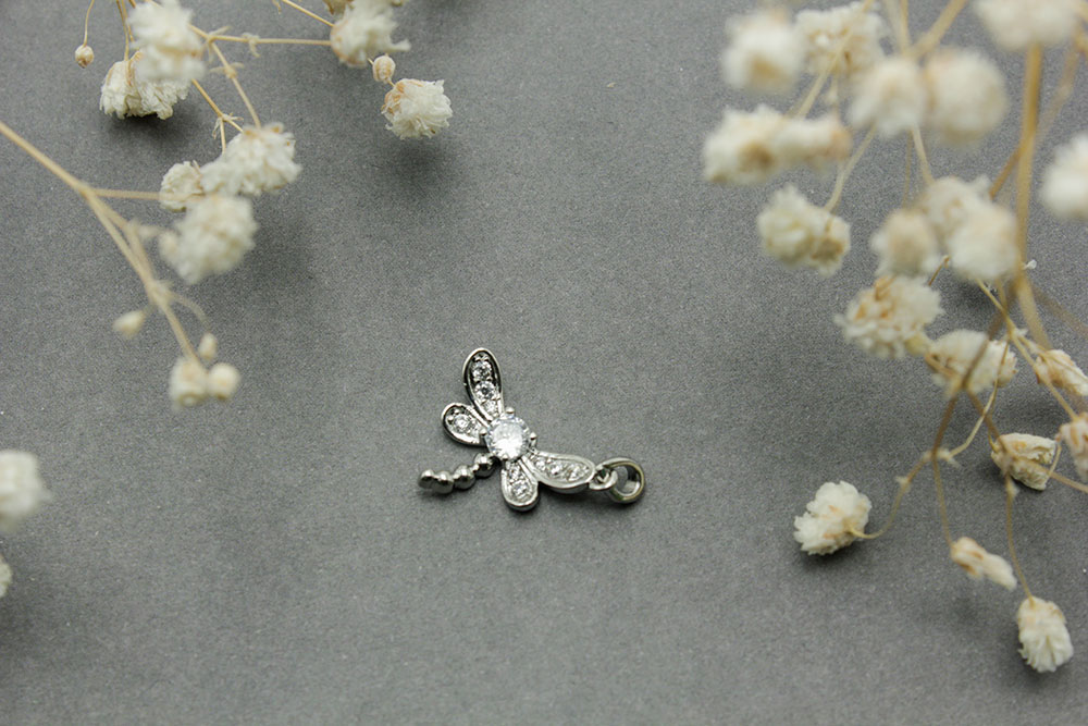 Подвеска №100 Стрекоза со стразами 15*10мм серебро 1шт