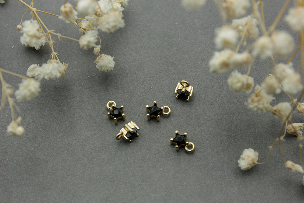 Подвеска №111 Звезда с черной стразой 6*5мм золото 1шт
