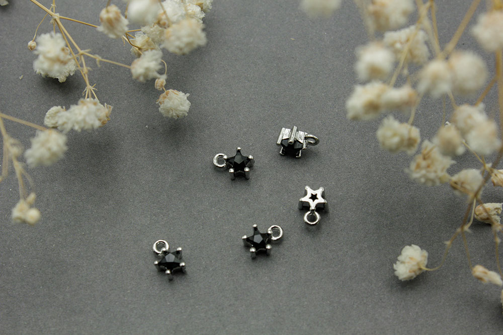 Подвеска №112 Звезда с черной стразой 6*5мм серебро 1шт