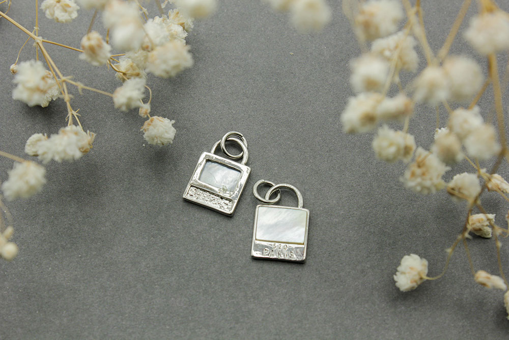 Подвеска №116 Замочек с перламутром 14*9мм серебро 1шт