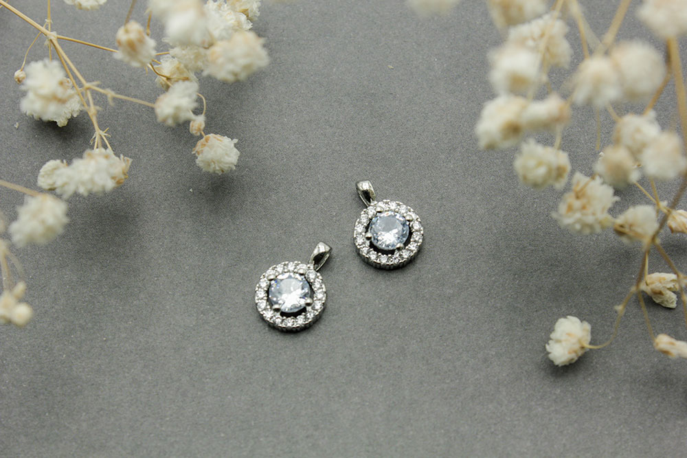Подвеска №126 Круглая со стразой 13*10мм серебро 1шт