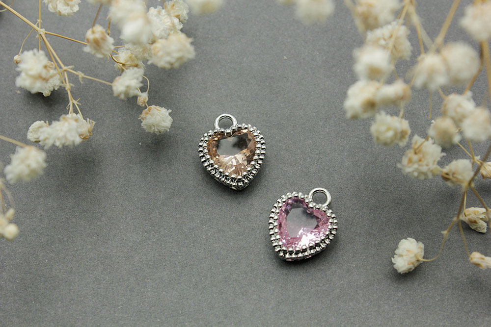 Подвеска №135 Сердце со стразой 15*12мм серебро 1шт