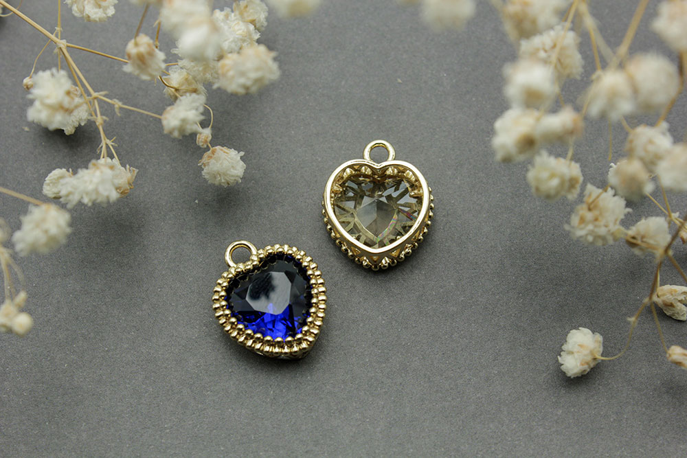 Подвеска №137 Сердце со стразой 16*12мм золото 1шт