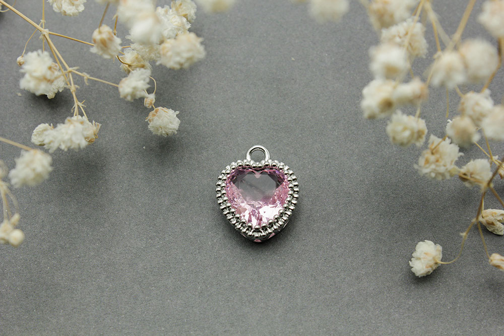 Подвеска №138 Сердце со стразой 16*12мм серебро 1шт