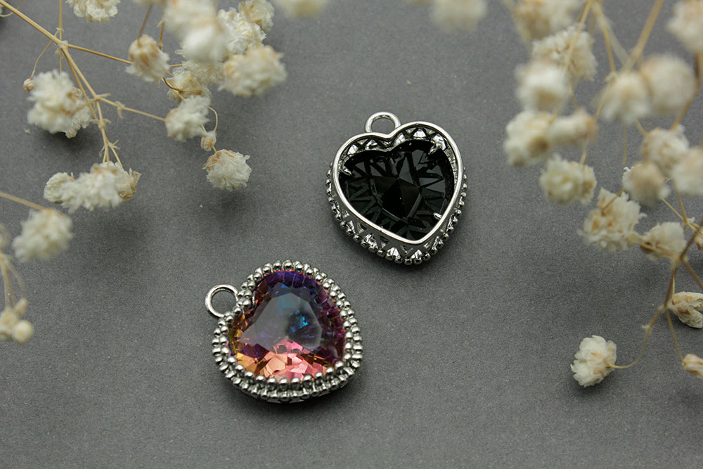 Подвеска №140 Сердце с граненым стеклом 20*17мм серебро 1шт