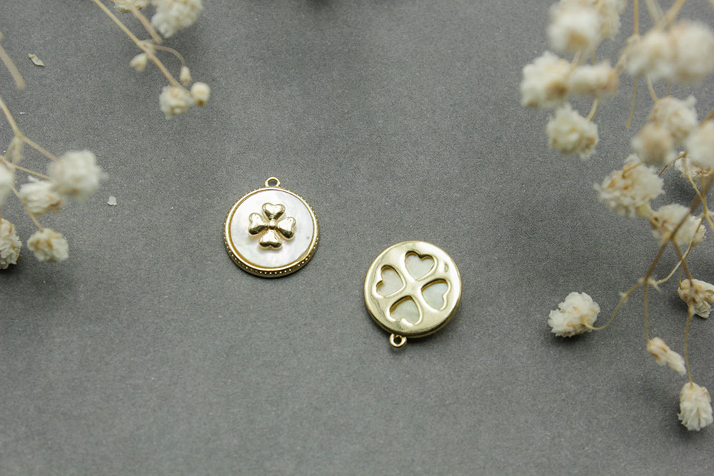 Подвеска №63 Клевер с перламутром 12мм золото 1шт - Рукоделкино Товары для творчества Фурнитура для украшений