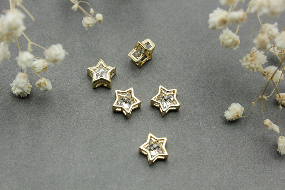 Подвеска №71 Звезда со стразами 9*9мм золото 1шт