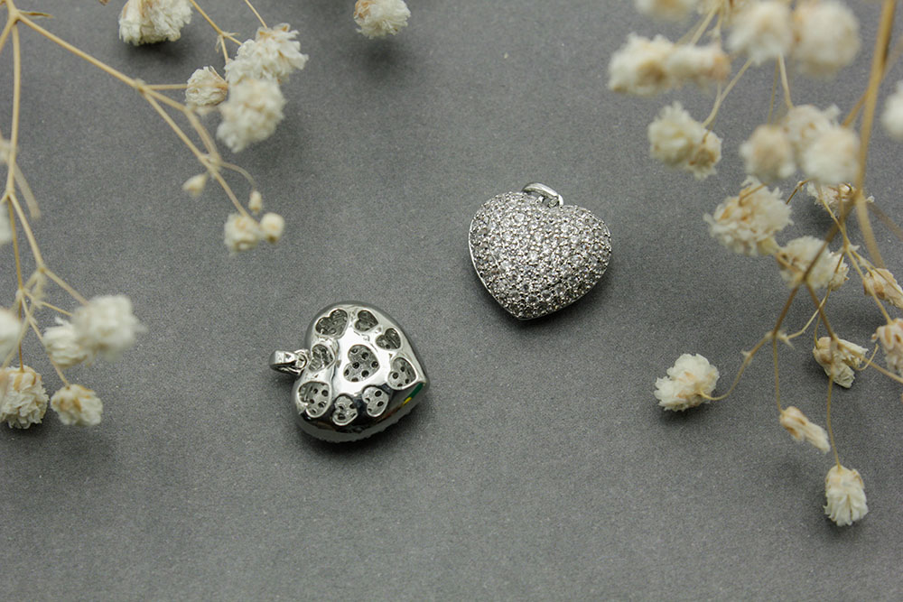 Подвеска №94 Сердце со стразами 15*15мм серебро 1шт