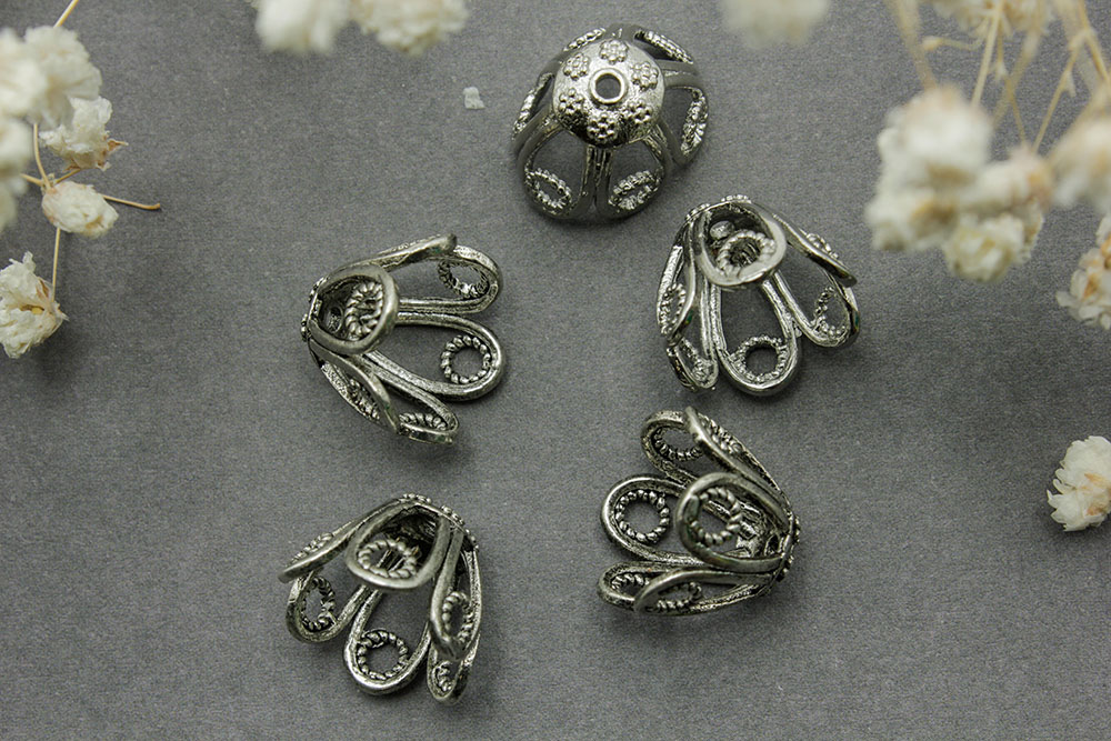 Шапочка №48 цветок без петельки 11*13мм серебро 1шт