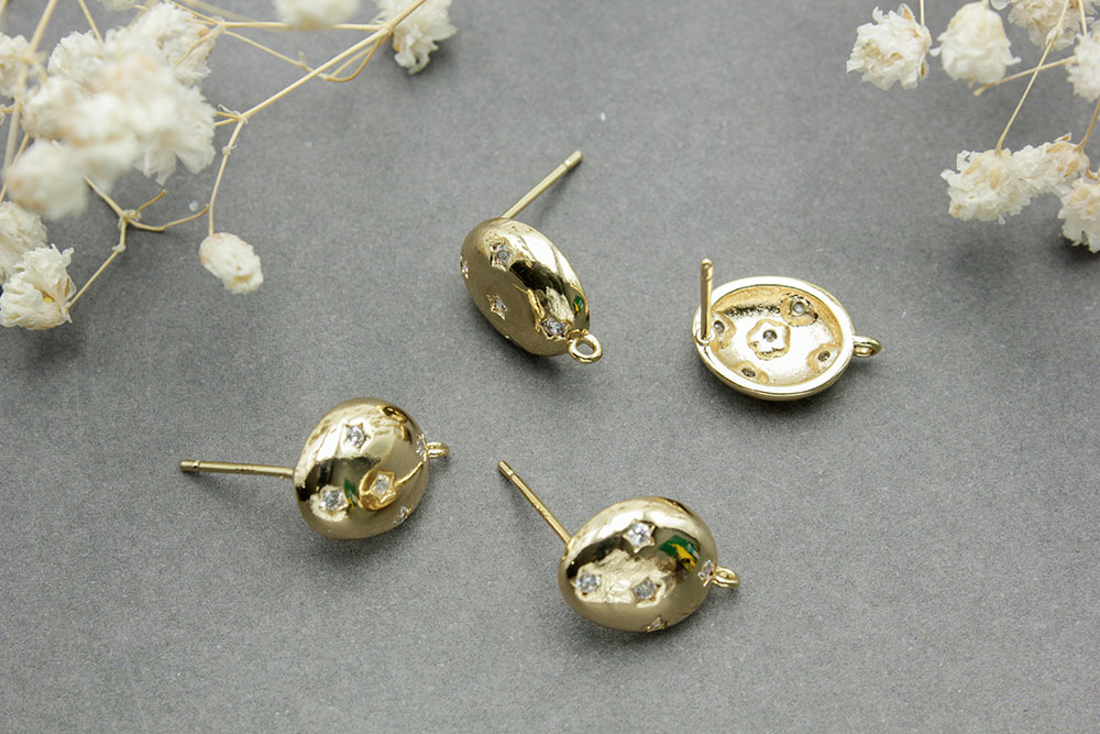 Швензы №72 гвоздики овал со стразами 11*9мм золото 1 пара