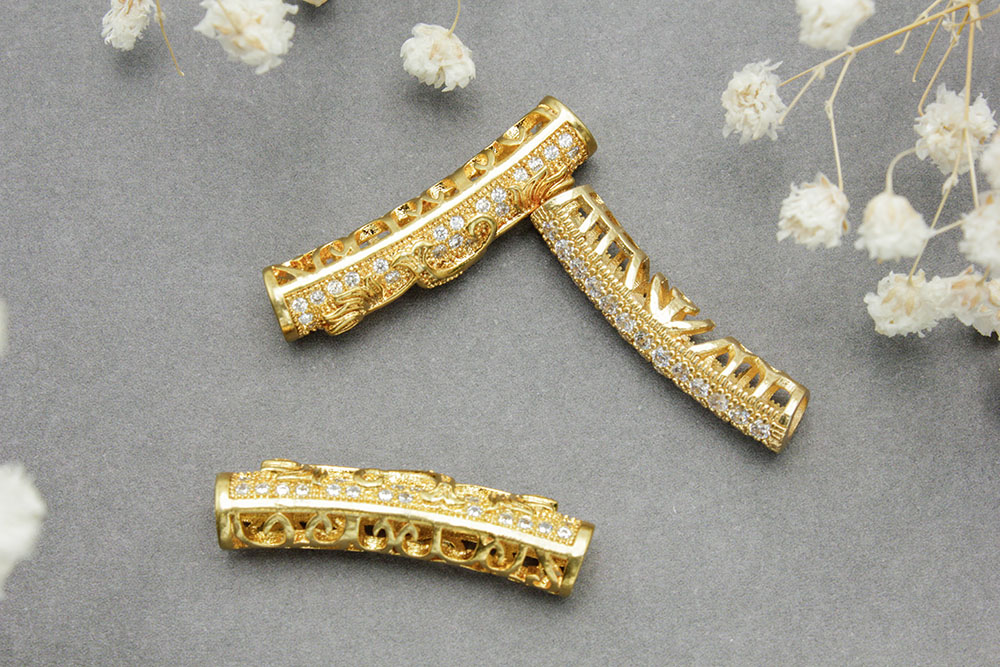 Трубочка №14 со стразами 30*5мм цвет золото 1шт - Рукоделкино Товары для творчества Фурнитура для украшений
