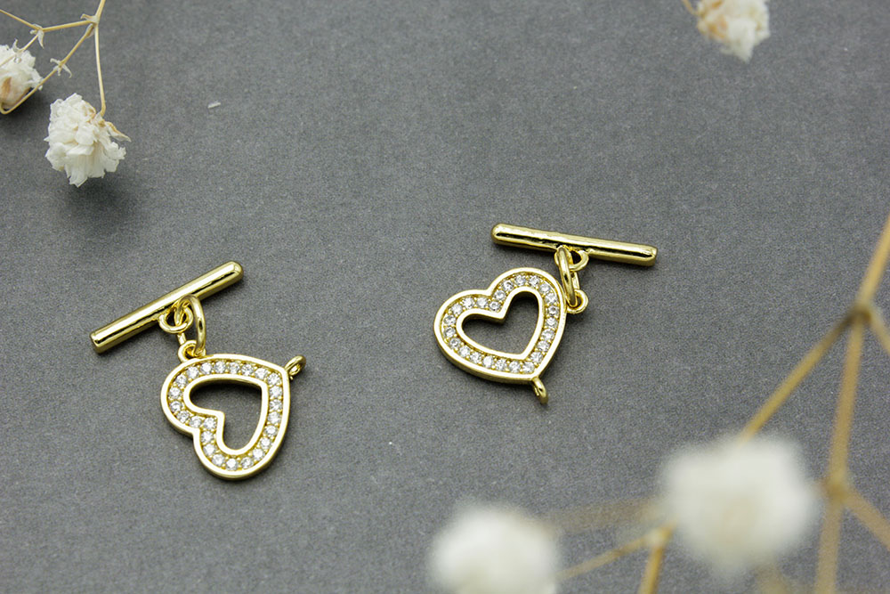 Застежка - тогл №22 сердце со стразами золото 1шт - Рукоделкино Товары для творчества Фурнитура для украшений