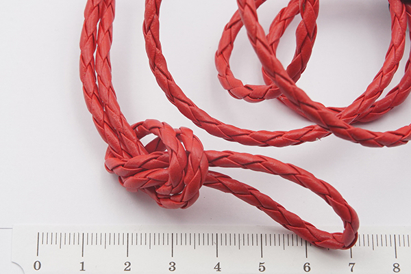 Шнур экокожа круглый плетеный 3мм/1м, красный №172